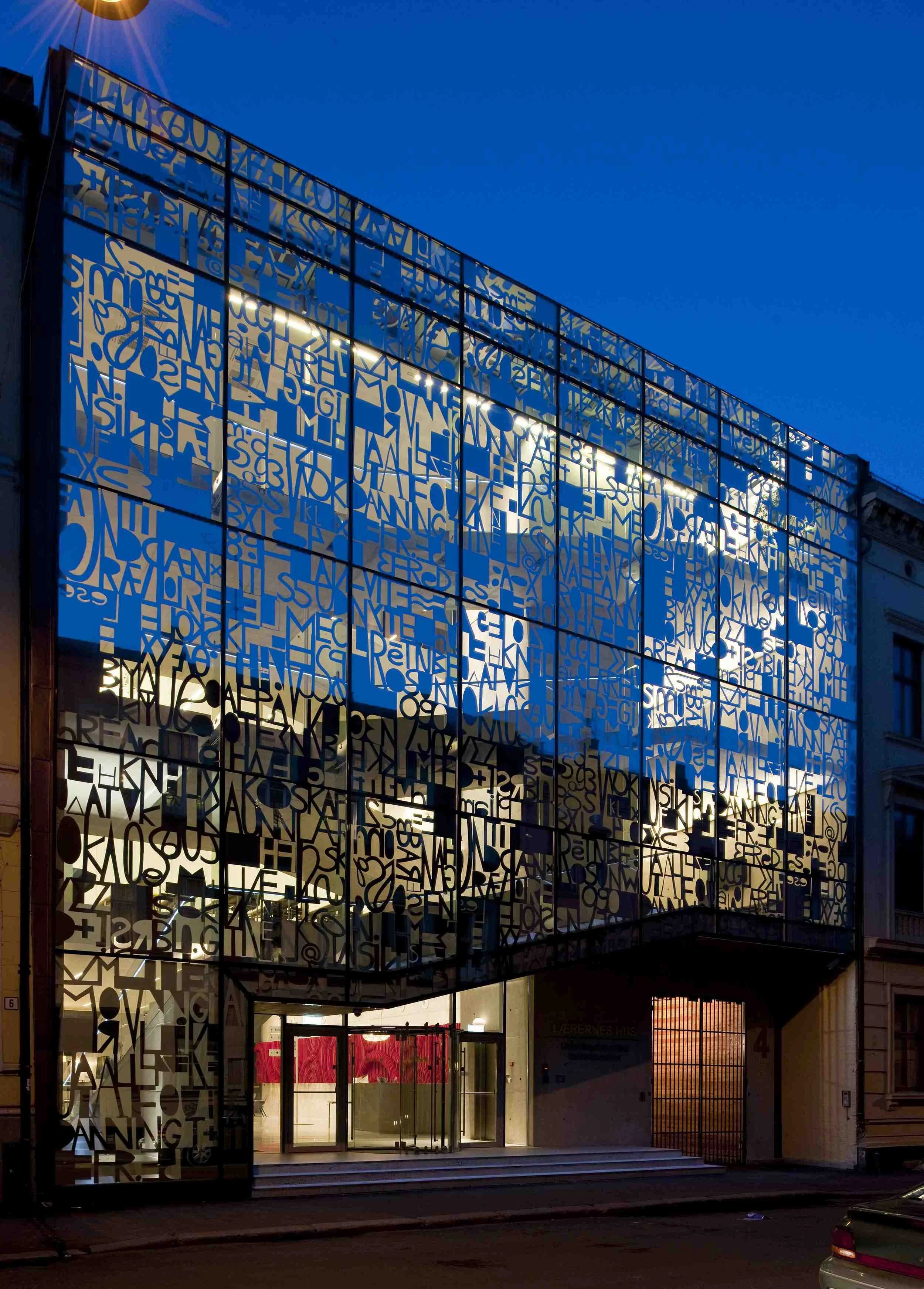 In the new conference centre for the teachers organisation, Lærernes Hus in Oslo, the task was to make an artistic expression on a 250m2 glass facade. In addition it should have an energy reducing effect.